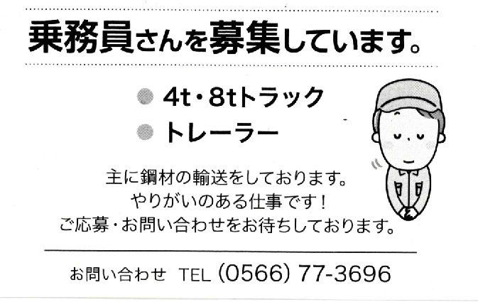 NIKKOブログ ホーム > NIKKOブログ一覧 > 10月より新たに 8トン車 求人いたします。 2024.09.10 10月より新たに 8トン車 求人いたします。 10月より鋼材輸送8トン車 地場常用 求人いたします。 常用仕事で大型連休も給与補償がある仕事です。 給与も安定しており 夜勤もありません 詳細は電話でお問い合わせください。 お待ちしております。 一覧へ戻る